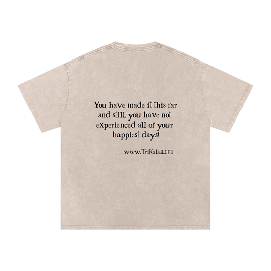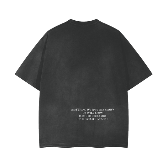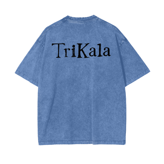 Trikala Originals Oversized black gray vintage Wash tee logo,hourglass and quote
